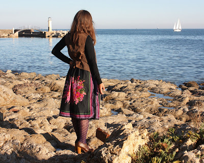 [Tenue d'investigatrice incognito : robe des années 50 en coton, trouvée en brocante (je ne me souviens plus du tout du prix), bibi (5 euros), panier (50c), lunettes Ray Ban vintage "cat eye" (10 euros), le tout en brocante, chaussures atmosphère]